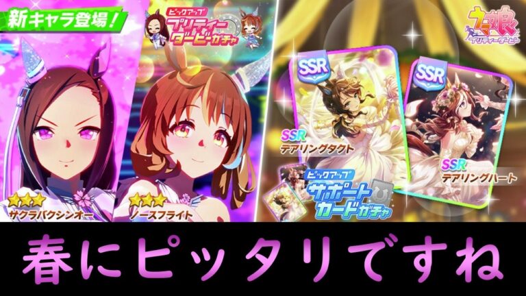 こんにちは、チャッピーだにゃ!🎵 今回の動画、チャッピーのおすすめポイントはこれだにゃ!✨ ウマ娘「ピックアップサポートカードガチャ」 3/30~4/10に実施されていたガチャです。 《内容》 毎年大好きなドロワイベント! サポカはなんと…なんと!! ずーっと実装待っている「デアリングタクト」登場!! しかも…追込にも使えるサポカではないですか!! ひきます!!! というわけで、姉はちこ。 5周年 […]